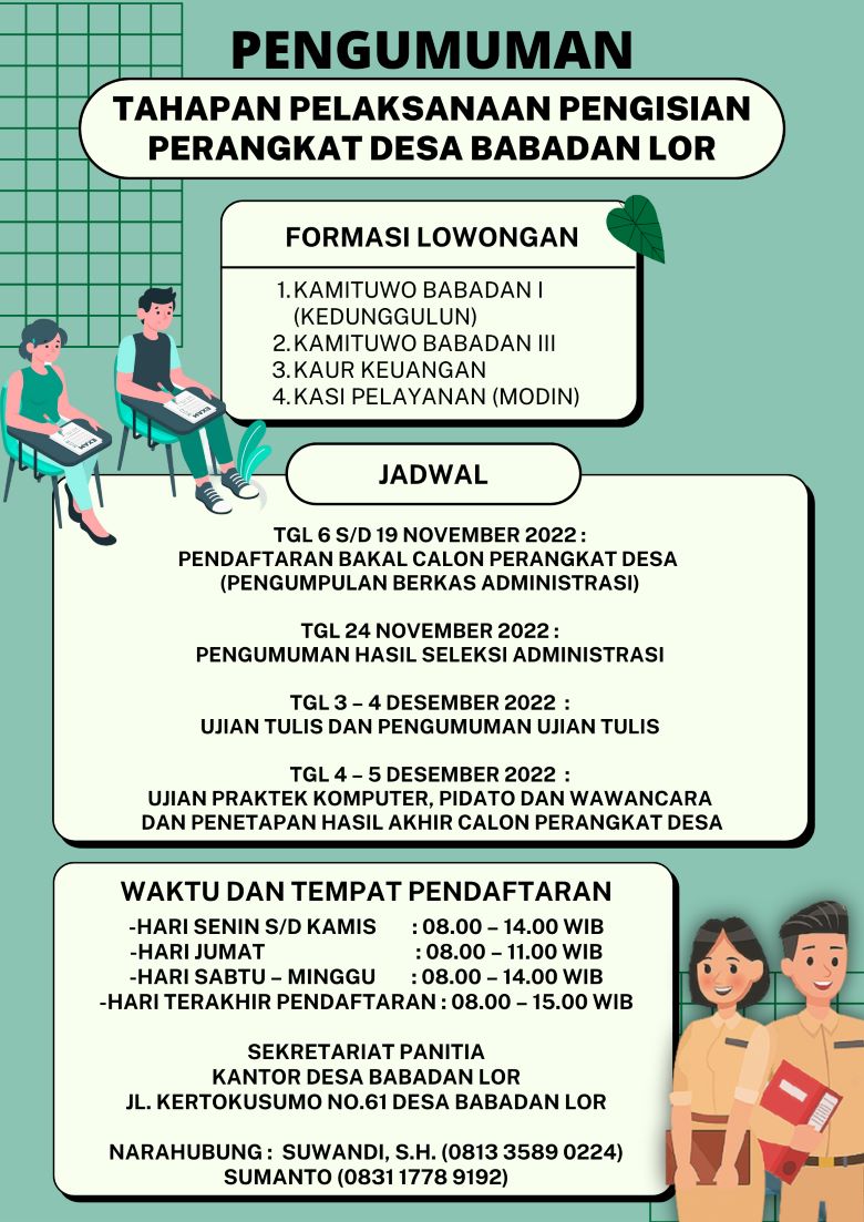 Berikut Pengumuman Tahapan Pelaksanaan Pengisian Perangkat Desa Babadan Lor Tahun 2022