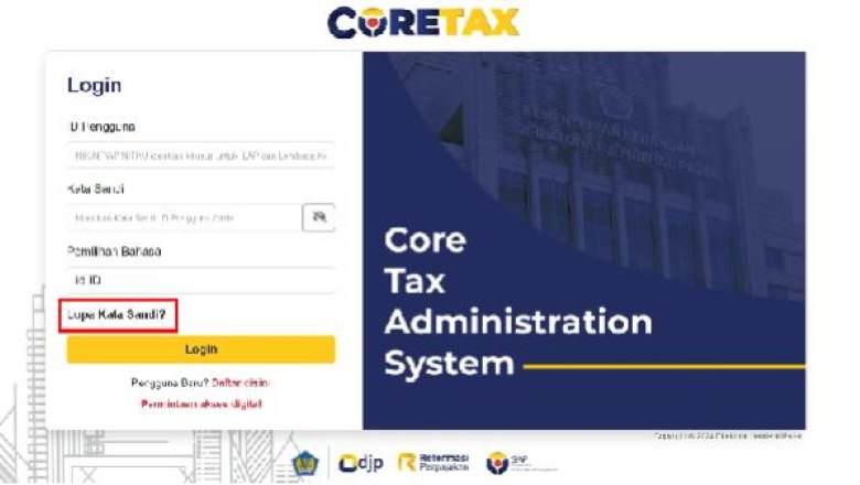 - Akses laman Coretax melalui tautan https://coretaxdjp.pajak.go.id/